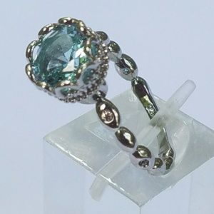 NEW Silver Round Aquamarine Ring