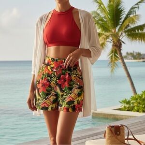 Vibrant tropical floral dressy shorts in a bold multicolor print