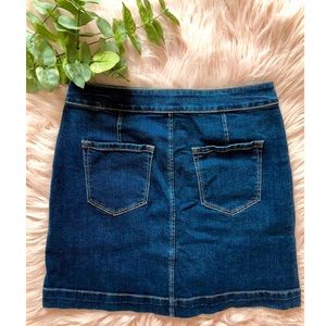 NEW WITH TAGS. In excellent condition. Never worn. Cool denim buttons up in the form of this city-girl skirt, an effortlessly flattering outfit foundation. Button front. Front slash pockets. Back patch pockets.