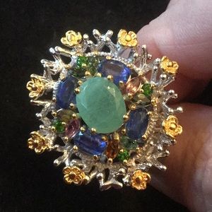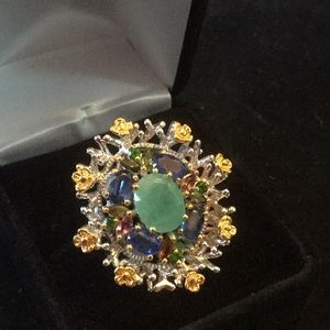 Fabulous Genuine Emerald, Tourmalines & Kyanite Ring