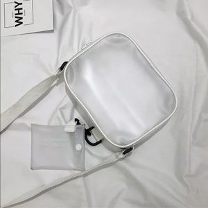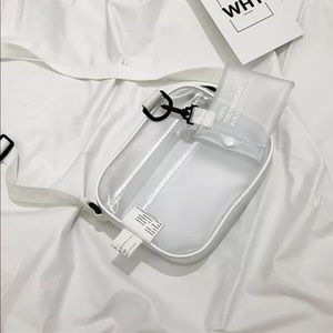 LAST ONE✨CLEAR✨CROSSBODY HANDBAG WITH ADJUSTABLE SHOULDER STRAP. CLEAR PVC WITH WHITE TRIM AND BLACK ACCENTS. ZIP TOP. STRAP IS ADJUSTABLE.