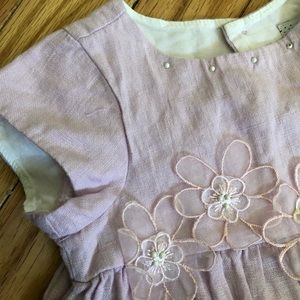 Cute light colored lilac summer dress with 3 flowers at bodice; cap sleeves; 3 button closure in back; 100% cotton