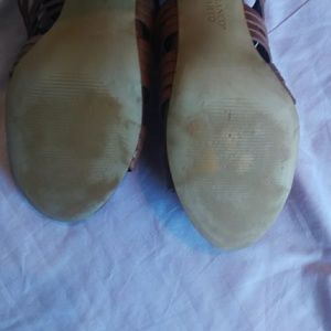 Franco Sarto brown leather zippered heel sandals great condition some signs of wear as shown in pics. Man made leather uppers size 10