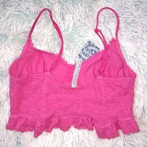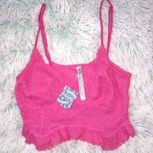NWT Free People Fleur De Lys Pink Crop Cami Lg