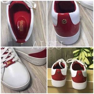 NWT Michael Kors Catelyn Lace Up White Chili Red W
