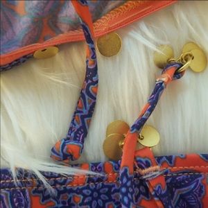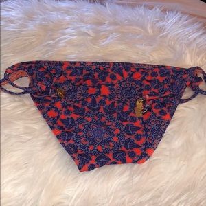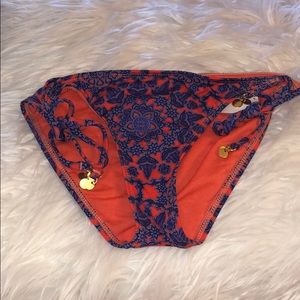 Rock these boho chic bikini bottoms this summer. Brand new with tags and liner. Size L. Adjustable string ties. Full coverage. Gold hardware. Beautiful deploy hues reddish orange and blue in color. Can be paired with just about any solid top. Super wearable and cute.