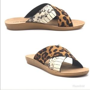 NIB Leopard Snake Slides Flat Wedge Sandal Black Tan animal BOHO sz 6