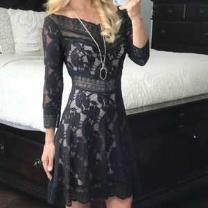 Free People Black Lace dress with tan underlay