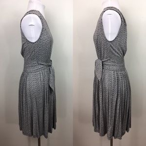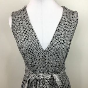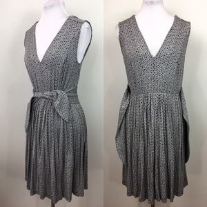 Super soft, gray jersey knit dress with a diamond pattern, & attached waist ties. V-neck with small pleats at waist.