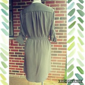 Casual, comfortable, two front pockets, elastic waist, sleeves can be worn rolled up or down, 14.5' waist, 20' pit to pit, 35' length, 100% polyester, machine wash cold, *missing belt* but you can add your favorite one!.. NWOT