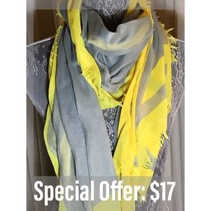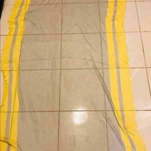 Beautiful airy oversized scarf in soft yellow and gray. Can be worn as a sarong or around your neck.