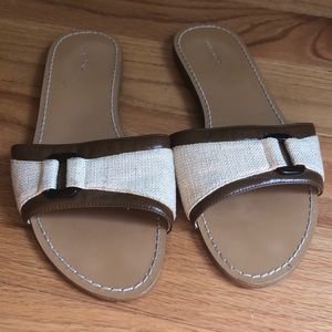 Canvas and leather sandals from Lands End. Very cute, casual and comfortable. They look stylish with everything. Very good condition.