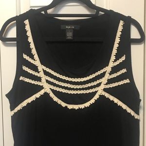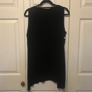 • NWOT! • Rayon & Spandex • Soft & stretchy • Cream colored crocheted detailing on front • Sides are longer than the front • This tank is long making this an ideal piece to pair with leggings. •