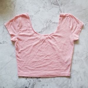 Light pink cropped top from Garage. Top features short sleeves, scoop neck and scoop back. EUC!