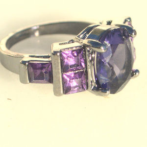Purple Amethyst Black Gold 18k Ring Size 7 Dinner