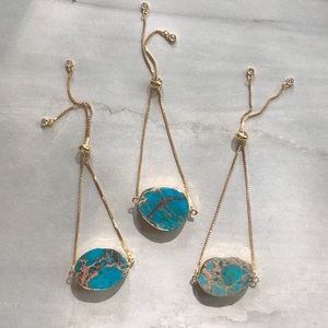 STUNNING raw jasper sea sediment boho bracelet featuring a cinch dainty 14K gold plated brass box chain with cz charms.