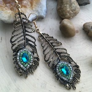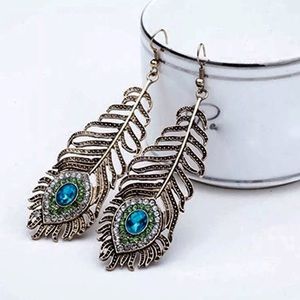 Antique Style Peacock Feather Earrings
