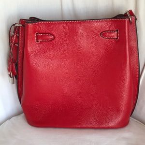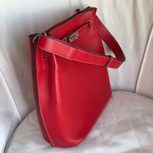 Red Pebbled Leather Shoulder Bag with Padlock