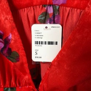 NWT Free People Red Floral Print Short Sleeve Top