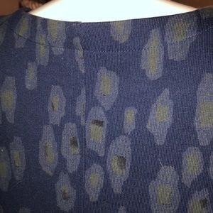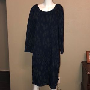 Beautiful, pullover, navy blue with green design throughout, only worn once, defined hem towards the bottom of the dress, zippers on both sides of the dress as shown in pictures.