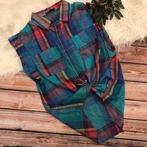 Urban Outfitters BDG Blue Plaid Rolled Sleeve Button Down Shirt.