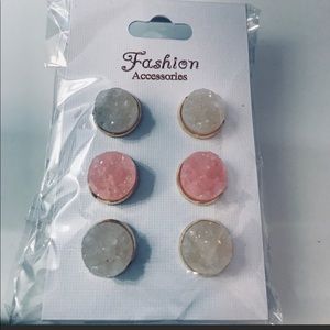 9 pairs of druzy style post earrings