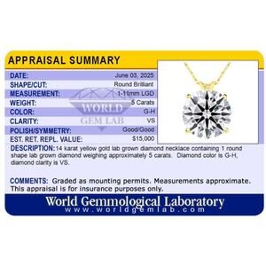 Dare to dazzle—this 5.00 carat, G‑color VS1‑clarity lab‑grown diamond solitaire commands attention in a flawless 14K yellow gold setting, suspended on a refined 18″ cable chain. Ethically crafted and precision‑cut for sublime brilliance, it’s the statement piece that transforms every moment—whether you’re sealing the deal or stealing the spotlight.