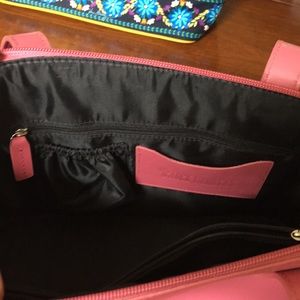 NWOT Jack Georges should bag. Pink. Metal feet in bottom. 2 zippered pockets inside. Zip closure. 12 1/2” x4” base. 9 1/2” high. 11” drop.