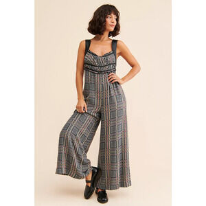 New Free People L'amour Printed Romper Black