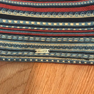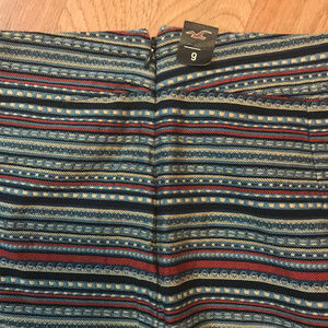 Hollister Striped Tribal Mini Skirt Sz 9, Blue, Red, Black And Beige Color, Zipper On Side, New With tags..