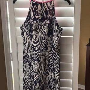 Navy and cream Lily Pulitzer dress with neon pink detail. Size 4 only worn once!