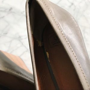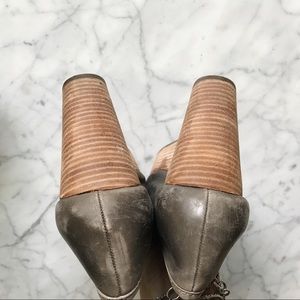 Beautiful gray/taupe genuine leather with intentional distressing, leather insoles (with some peeling- see photos), size 8.5M, in excellent condition! Worn twice and stored away in a closet. Retails for $120. 4.25" heel at highest area.