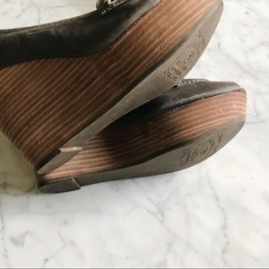 Lucky Brand Gray Brown Laila Leather Wedge Heels
