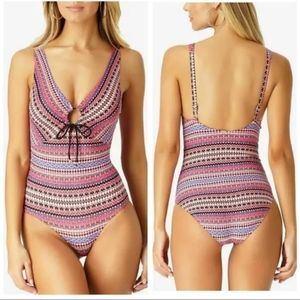 Signature intertwined CC charm with variation of color enameled on one side and plain gold plating on the other, stationed faux pearls, one with CC logo and one purple ombre'. Lobster clasp with laser engraved insignia, gold plated chain 24". Comes in original Chanel box with pouch.