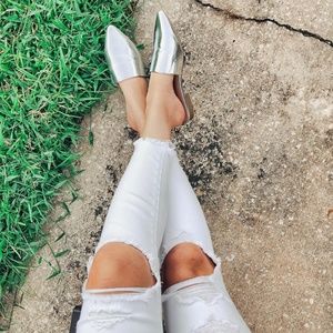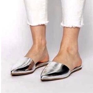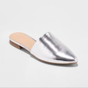 NWT A New Day Silver Metallic Slip On Mules sz 8-9