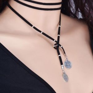 Versatile suede velvet choker in black or brown with silver tassle ends