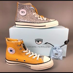 Converse x Miley Cyrus Pride Rainbow Platform Sneakers.