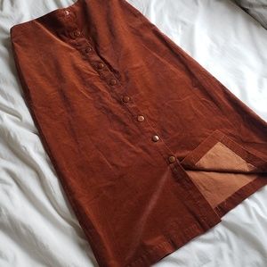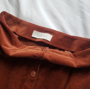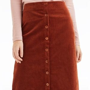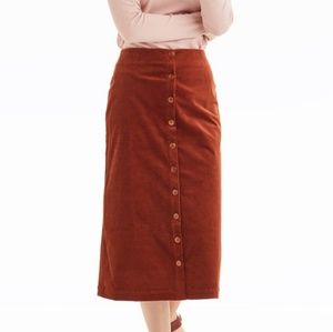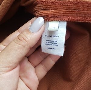 The Leigh skirt by Shaina Mote is made from smooth stretch corduroy in an adobe colorway. Features an A-line fit, button up front, and pockets. The 'Leigh' skirt by Shaina Mote is made from smooth stretch corduroy in an adobe colorway. Features an A-line fit, button up front, and pockets. 98% Cotton 2% Polyurethane Made in the USA