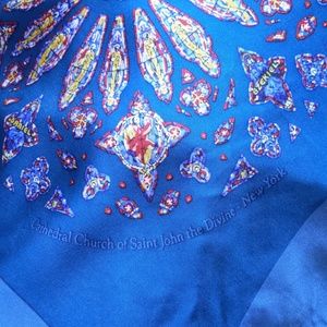 🎊🎊🎊VINTAGE, THE CATHEDRAL CHURCH OF SAINT JOHN DIVINE FAMOUS WINDOW DESIGNS, 36"x 35", HAND ROLLED HEMS, MINIMAL SIGNS OF WEAR🎊🎊🎊