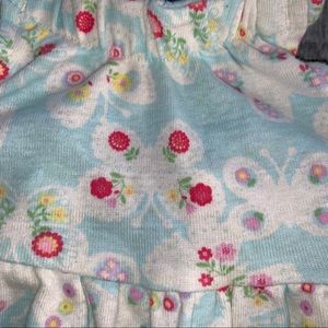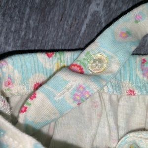 Sweet little romper made from a really soft cotton. The straps are adjustable with buttons as shown in the pictures. Snaps on the legs for quick changes. Excellent used condition. From a smoke free home.