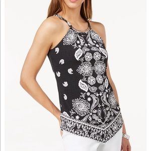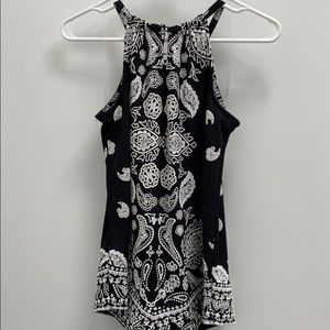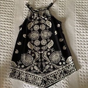 Beautiful Black & white with silver necklace collar, so pretty with white jean capris or shorts! No tags but never worn! Beautifully Boho!