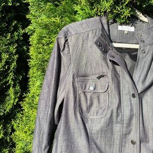 Calvin Klein jacket! Size 14. Zipper option. Belt detail. Pockets and lined! Gently worn; no noted wear including stains, piling or tears.