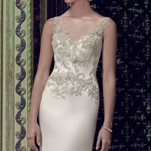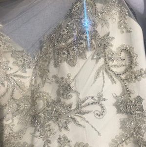 Brand new. Retails for $1350. Asking $800; open to reasonable offers. Labeled size 8, fits more like a 6, but never worn, never altered, so plenty of allowance to tailor. The stock photos really do not do this dress justice. The close up of the beading is unfiltered. 😍 The body of the dress is charmeuse and like butter. Absolutely gorgeous dress and detail.