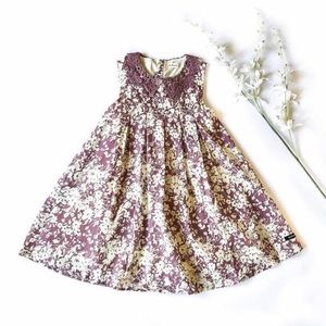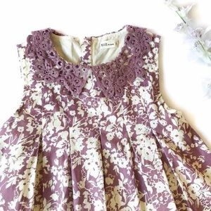 Puce Pink Pleated Waistline Cotton Print Sleeveless Dress.