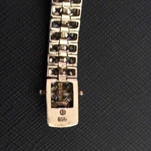 Unfortunately these diamonds 💎 are not authentic but, very beautiful none the less. The bracelet itself is sterling silver, with two rows of diamonds that have an amazing brilliance. No one but you will know the truth. At full length it measures 9 inches. Dress it up or down. Works well either way. Like new. Worn twice. In original case. Ring and necklace not for sale