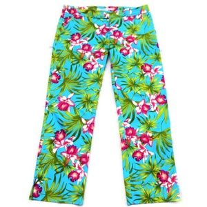 Zara Woman Ankle Slit Pants Chino. Floral Tropical Hawaiian Allover Print. Front Hip Hidden Pockets. Back Faux Welt Pockets. 97% Cotton 3% Spandex. Tagged Size 8.