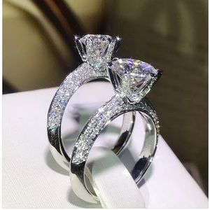 Clear pure Diamond simulated diamonds, main stone: Swarovski Heart cut stones eternity ring settings wedding band Jew Lab created/cultured diamonds white Silver plated high Quality perfectly polished size 6 Gift. Fashion women engagement ring Royal Look.