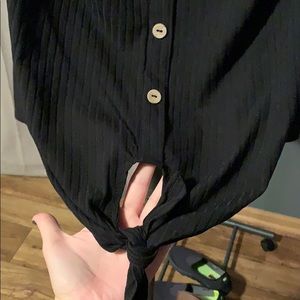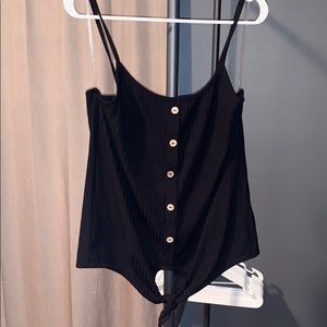 Women’s size medium black spaghetti strap tank top. Buttons are fake but has tie at the bottom of the front. Worn once. Ordered from Dottie Couture Boutique. Perfect condition. Smoke and pet free home