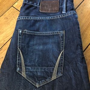 Selling 2 all saints jeans for men. (1) blue broken down denim size 31 & (2) dark indigo blue w antique markings size 32. Both are slim/biker fit.