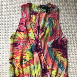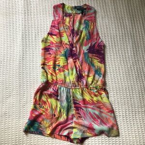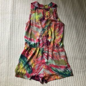 An elasticized drop waist creates a flattering fit on a sleeveless, surplice printed romper. Excellent condition, no flaws. No trades, offers welcome.